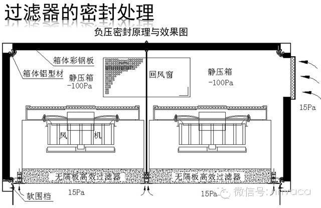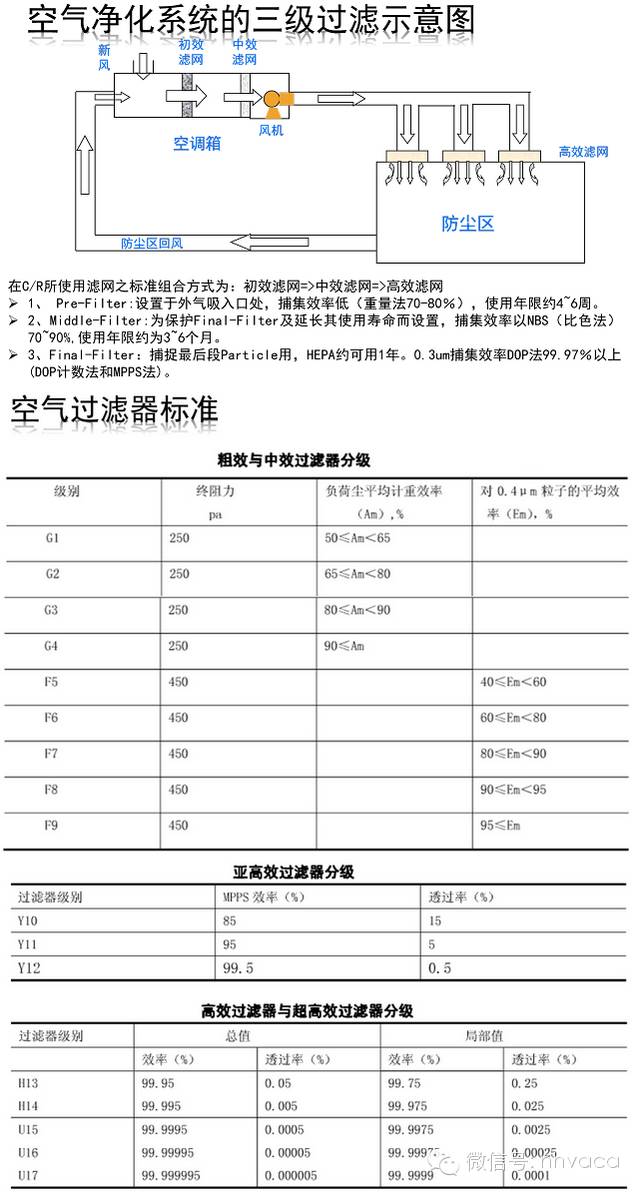 1.送風至少經過三級過濾(粗效、中效和高效),并且高效過濾器應設置在系統的末端。